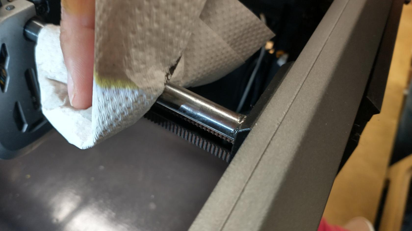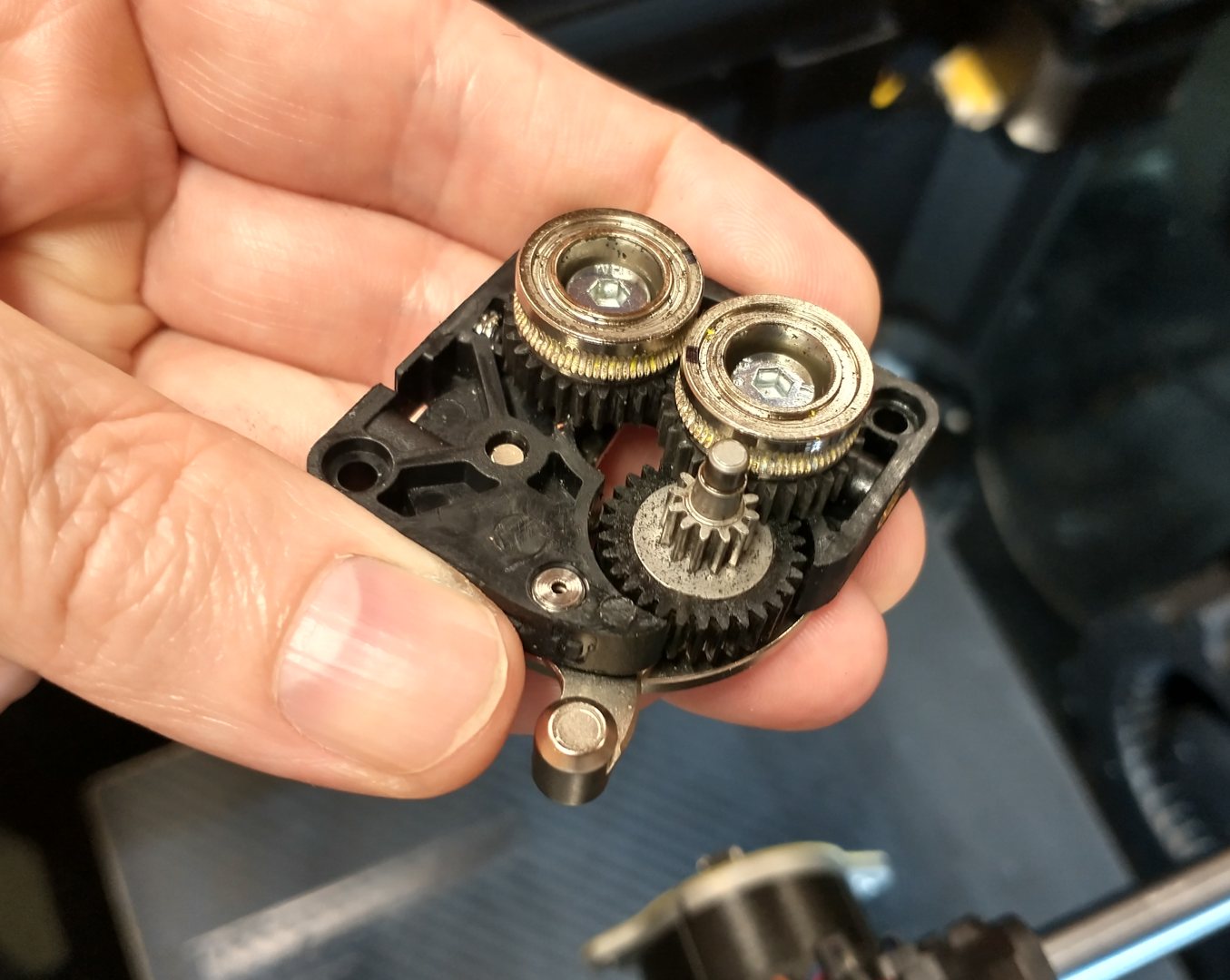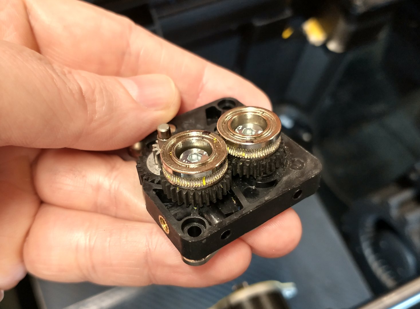 - po zdemontowaniu (wystarczy odkręcić i wysunąć z karetki) sprawdzić czy na zębatkach nie pozostał jakiś materiał