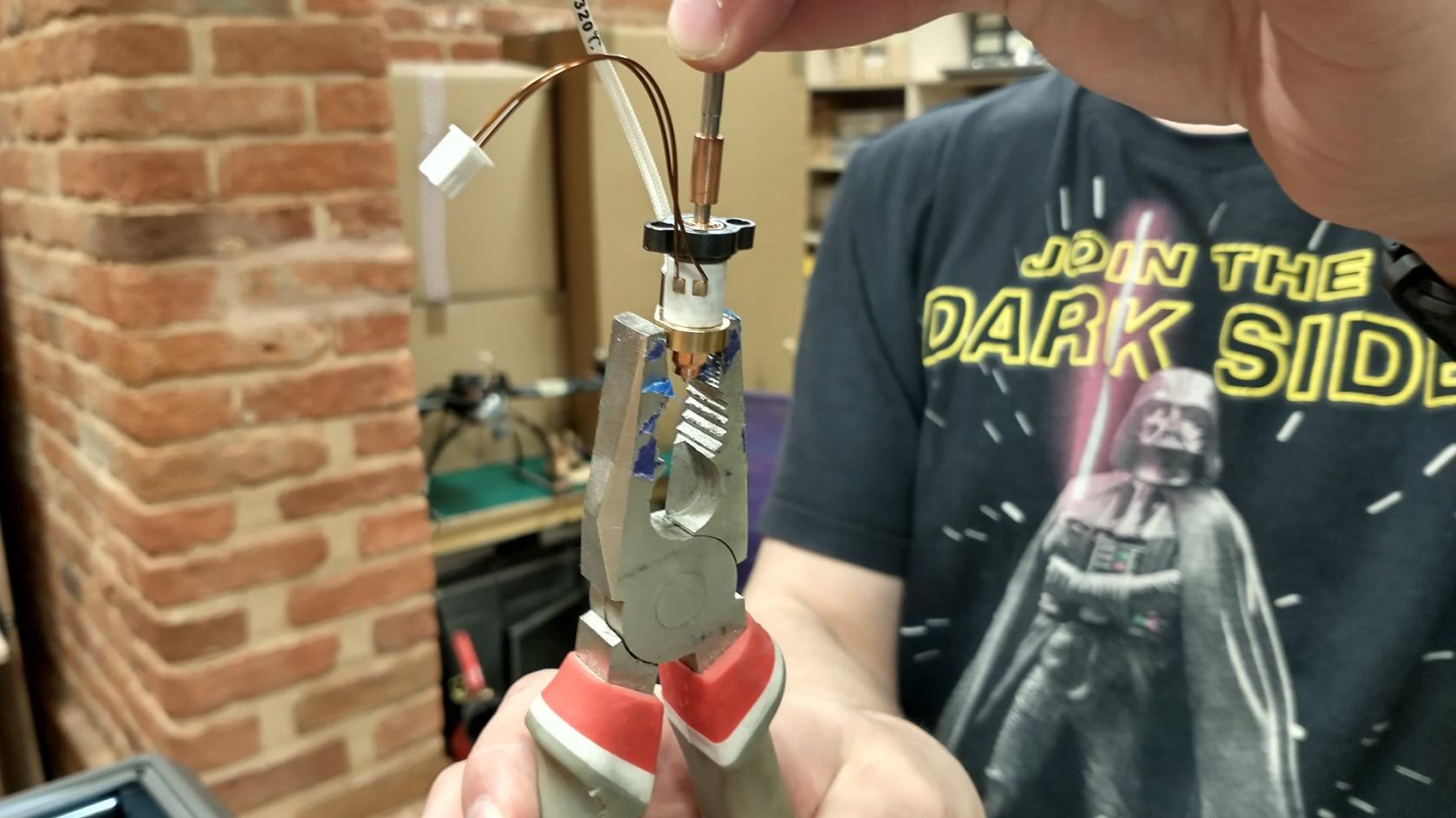 - może być konieczne przytrzymanie np. kombinerkami. Łapać "od dołu". Uniknie się wtedy ryzyka zsunięcia szczypiec i ukruszenia elementu ceramicznego.