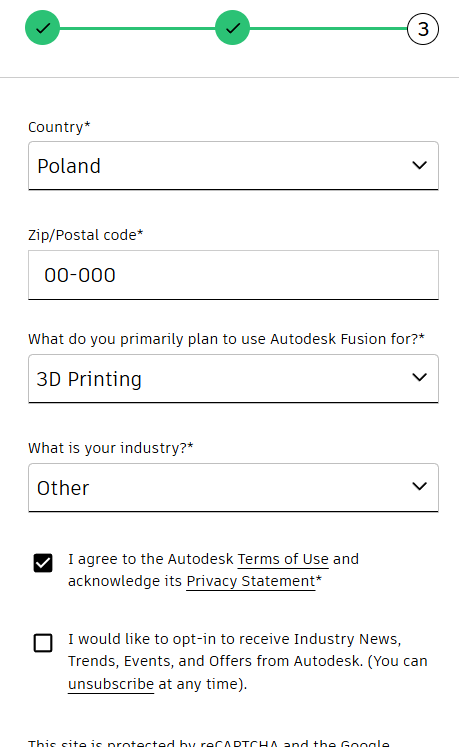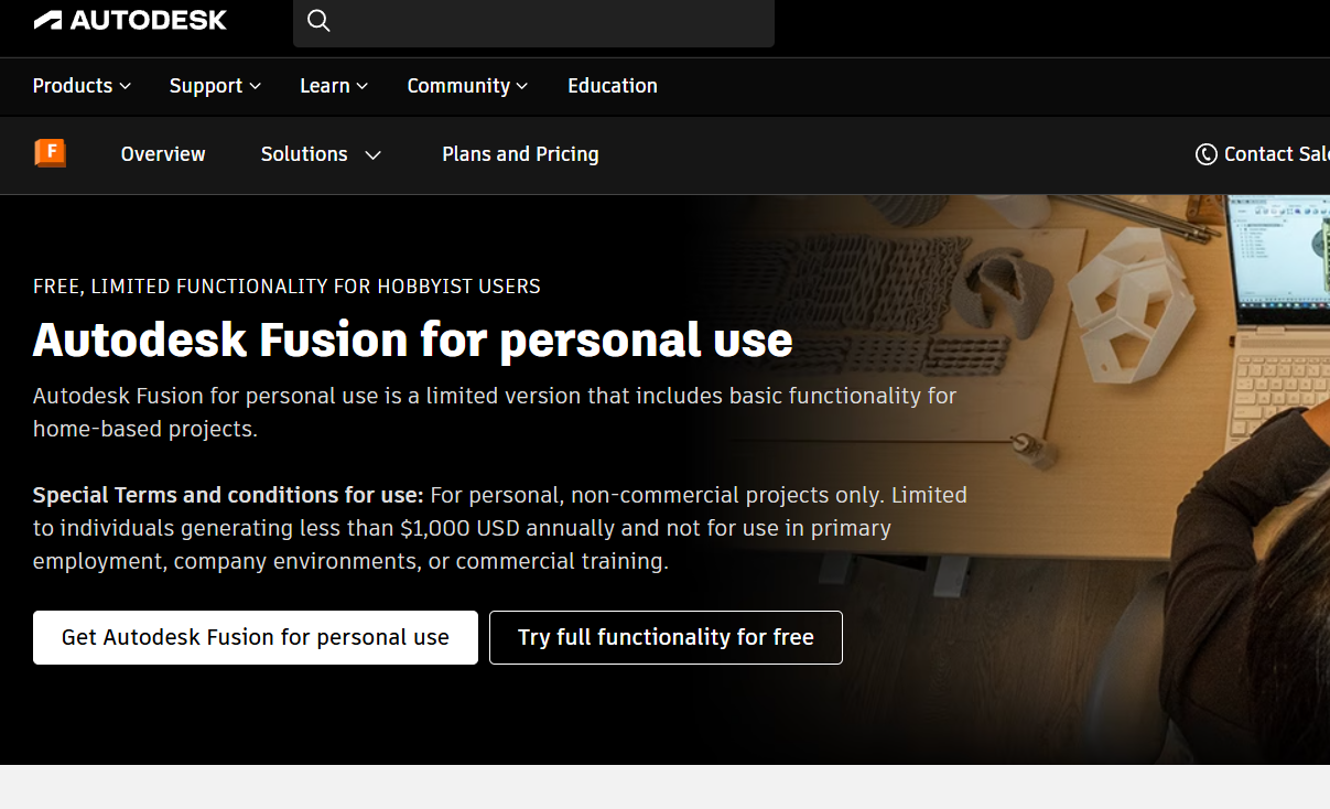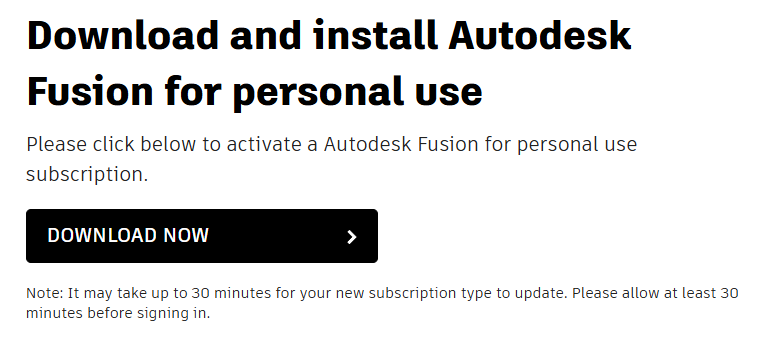 3) klikamy "Get Autodesk Fusion for personal use" i logujemy się na swoje konto