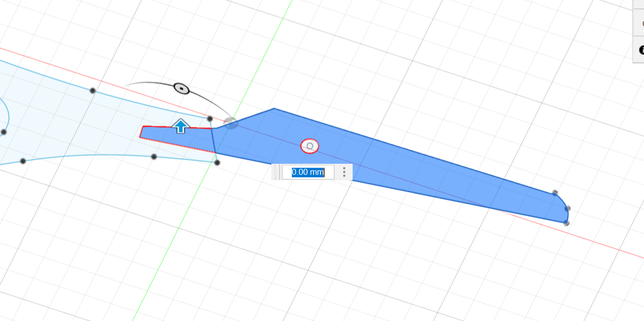kolejnym elementem jest zaznaczenie dwóch profili ostrzy, w tym celu "pokazujemy" szkic w drzewku i ukrywamy body, wybieramy profile, pokazujemy body i wyciągamy symetrycznie na 1mm. WAŻNE w typie operacji wybieramy "new body"