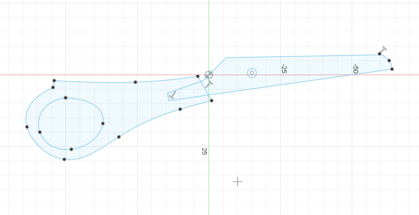 Po skalibrowaniu tworzymy nowy szkic na płaszczyznie gdzie leżą nasze nożyczki. Będziemy tworzyć szkic tylko połowy nożyczek, warto zrobić to na stronie którą widzimy. Do tego celu warto użyć narzędzi lini, splajn i okręgu.