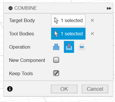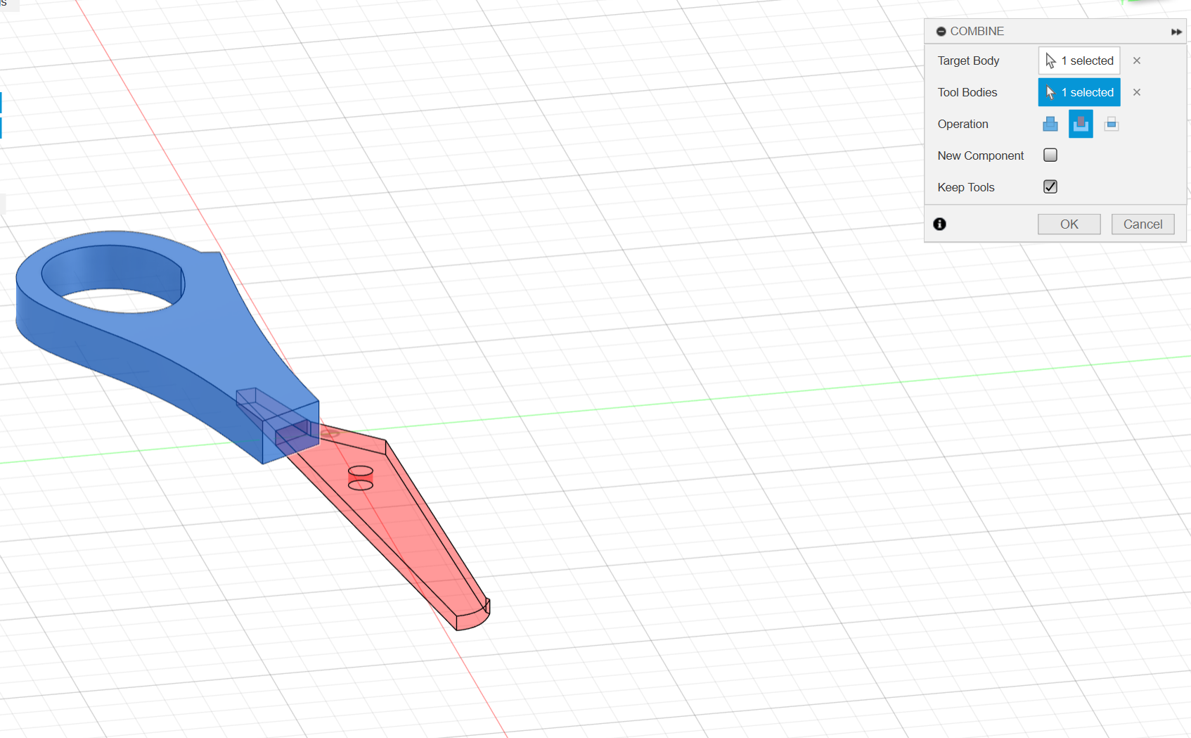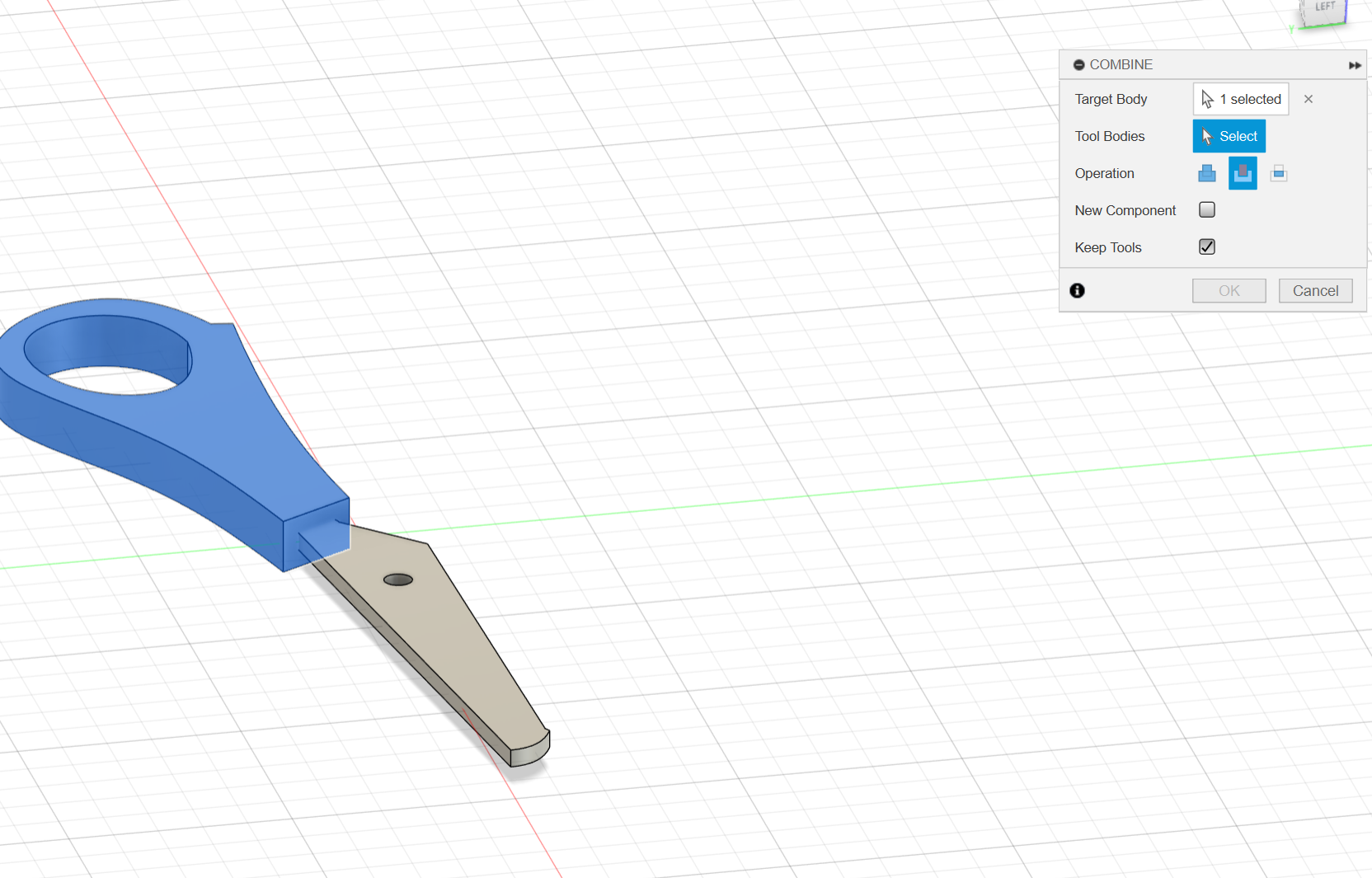 Ostatnim elementem jest wycięcie otworu na ostrze, do tego posłuży nam narzędzie "combine" z zakładki "modify". W okienku po prawej zaznaczamy:
