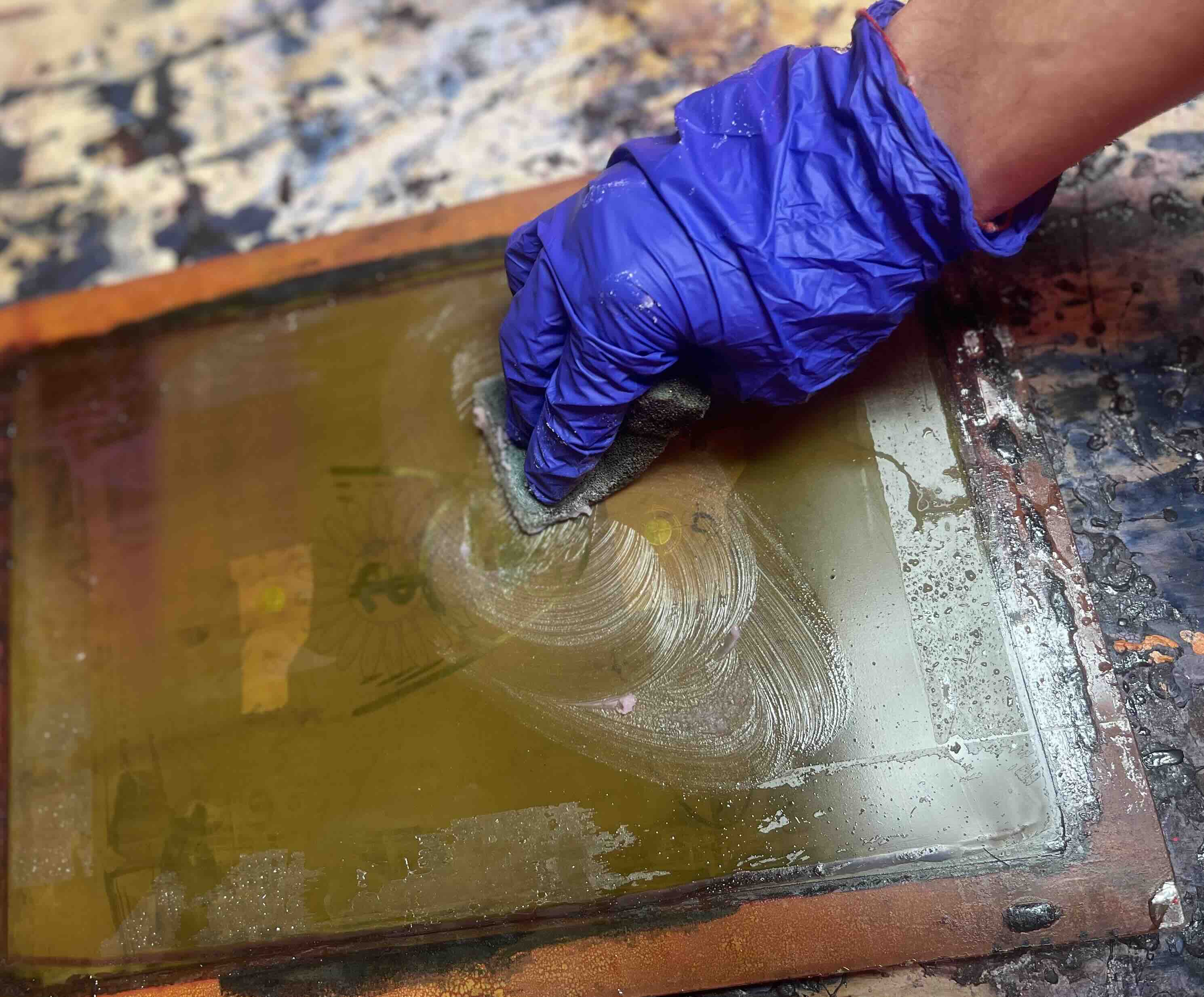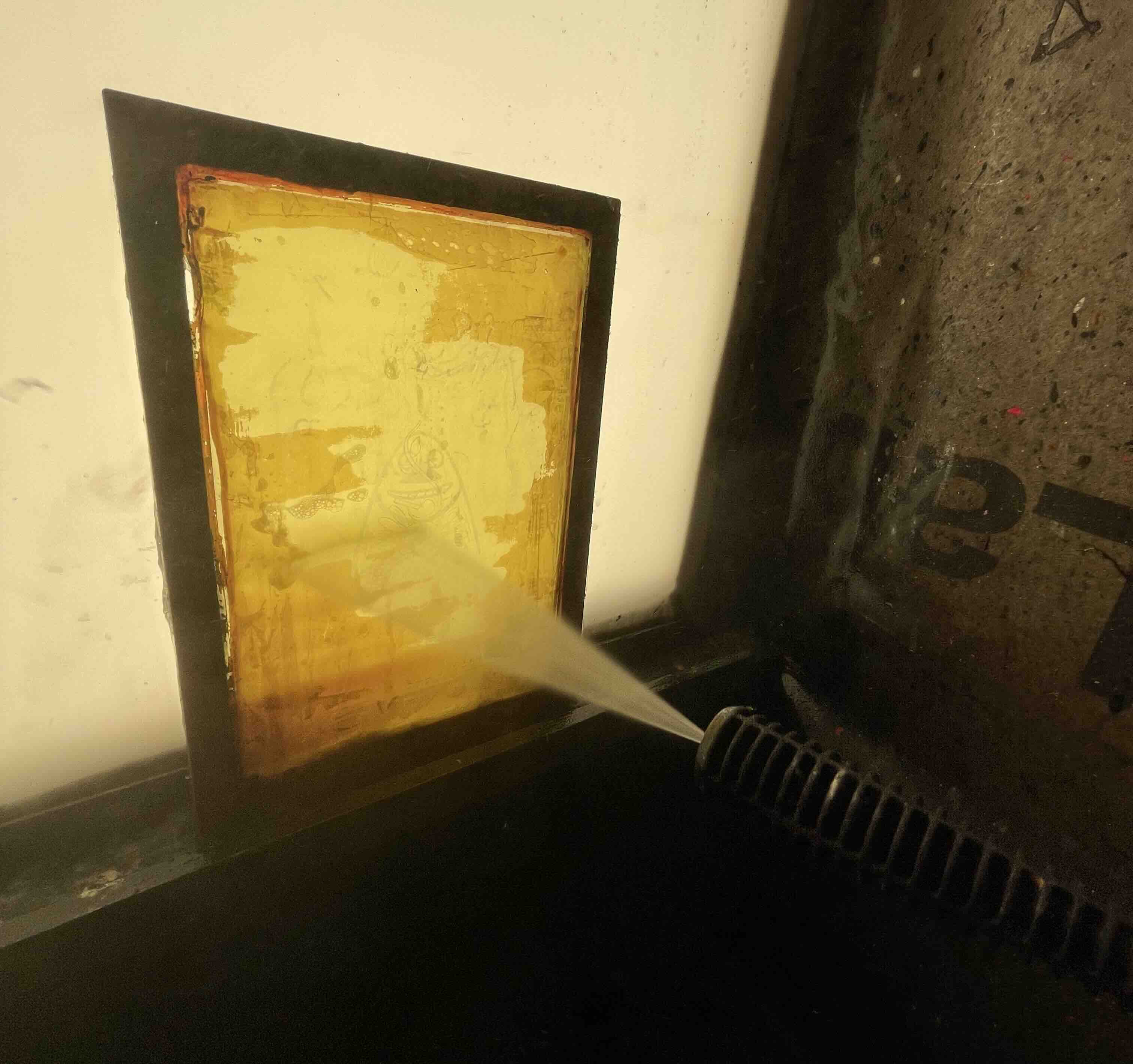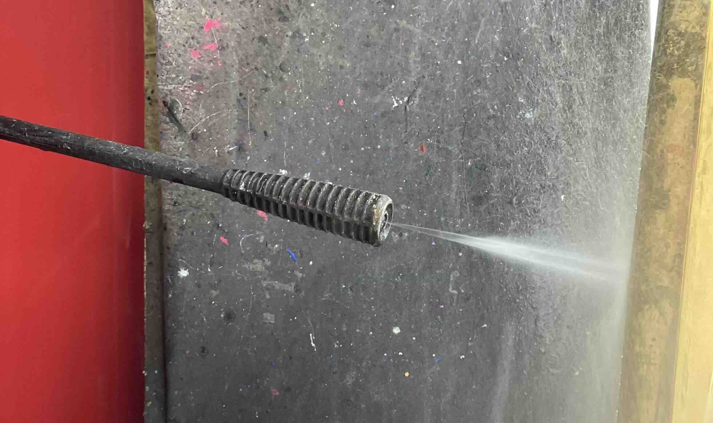 - Włącz dopływ wody do myjki ciśnieniowej (po lewej stronie przy ścianie). Spryskaj sito po obu stronach i zostaw mokre na kilkadziesiąt sekund.
