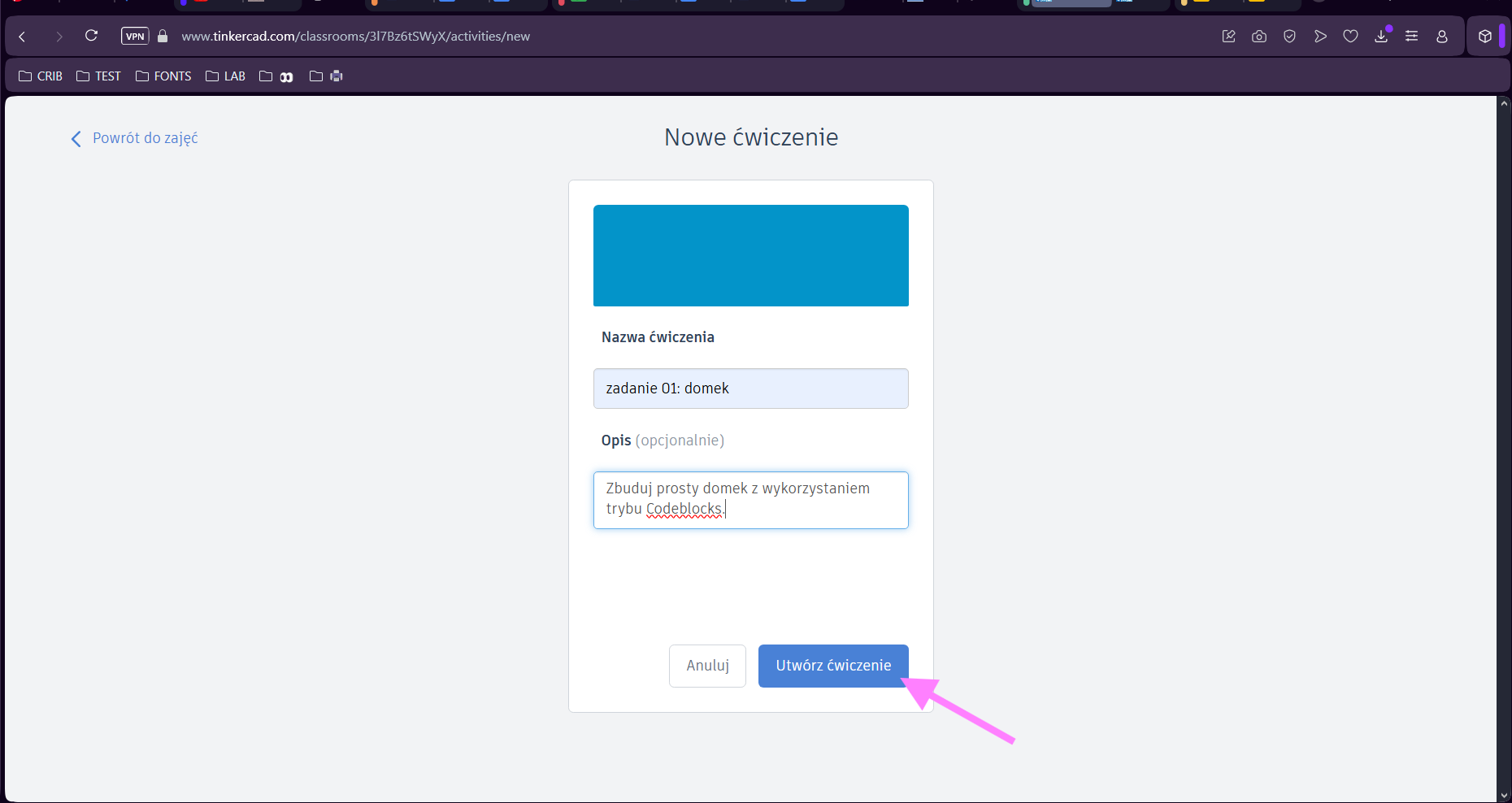 21. Po stworzeniu opisu, tworzenie ćwiczenia potwierdź klikając "Utwórz ćwiczenie".
