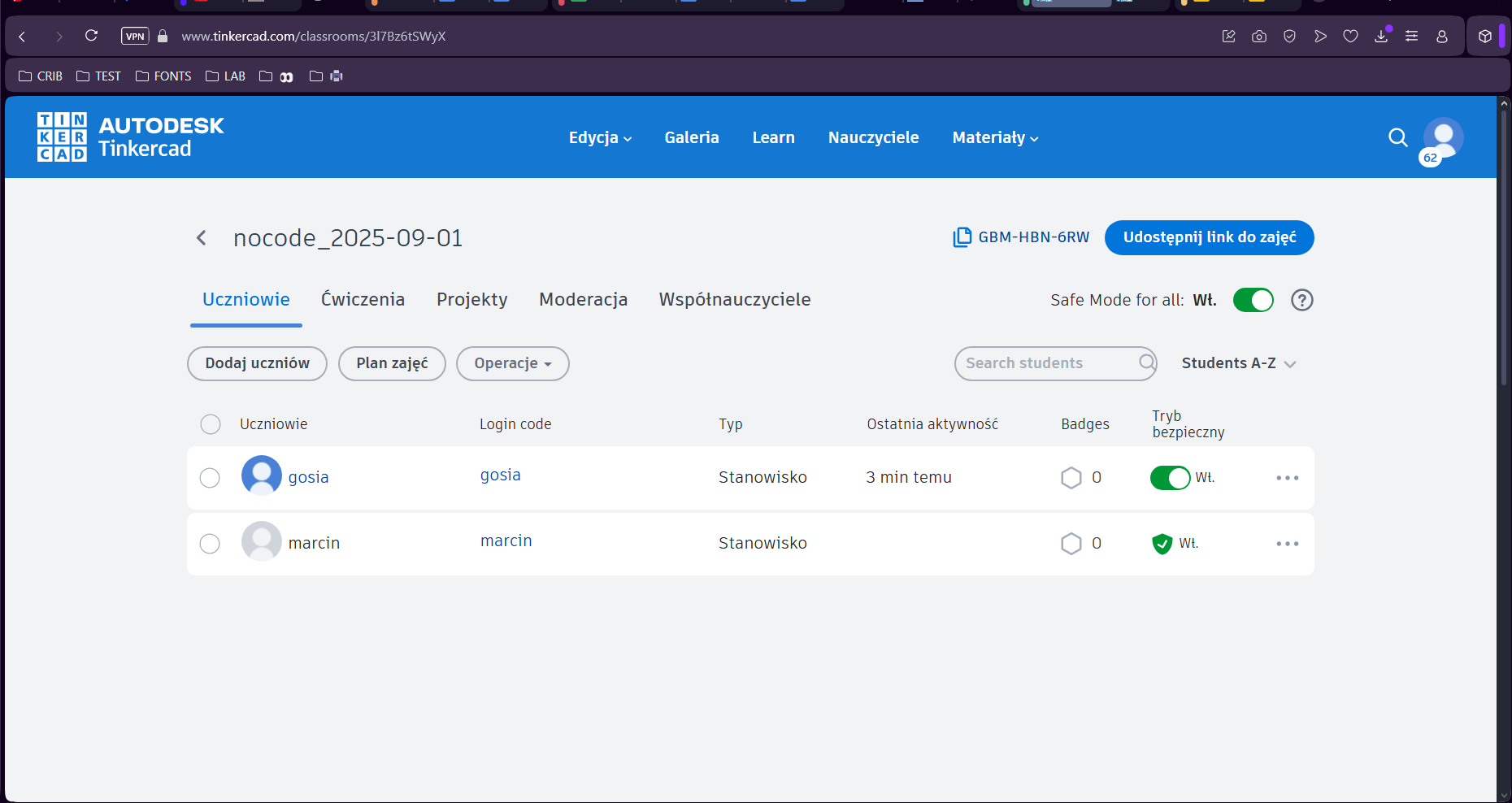 25. Każda z osób klika "Utwórz nowy projekt" - każdy z projektów utworzy się w klasie, dzięki czemu będziesz mieć dostęp do każdego z projektów :)